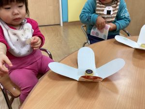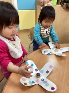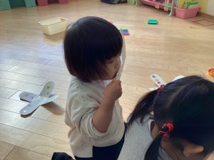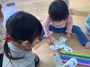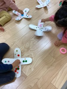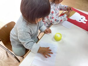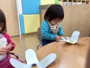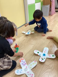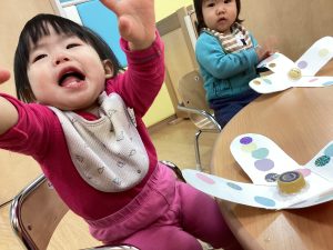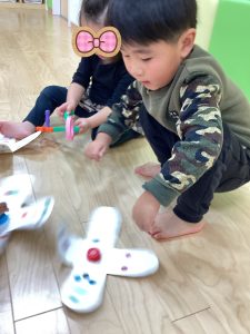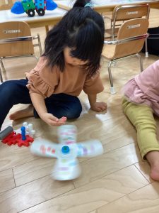 りんごくみのおともだちもコマを作ってコマ遊びをしました💕