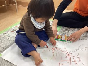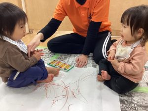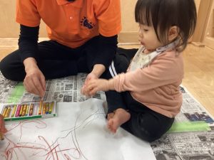 大きな模造紙にクレパスで自由になぐりがき🖍