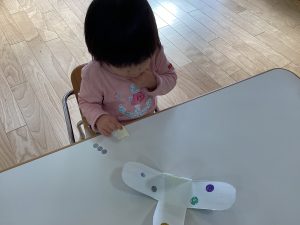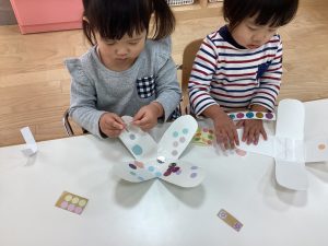 シール貼りをして可愛いコマの完成✨