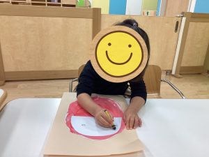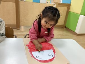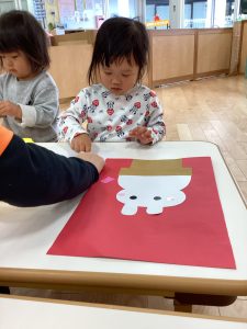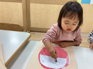 上手にだるまさんにお顔を描いていくよ👀