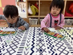 ぐりぐりーと力を込めて意地でも色をつけたい子どもたちでした笑