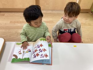 好きな絵本を自分で選んでおともだちと一緒に読む微笑ましい姿も見られます♩