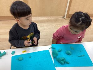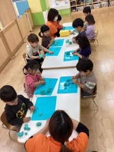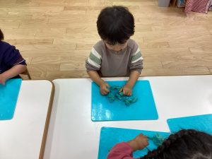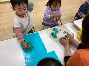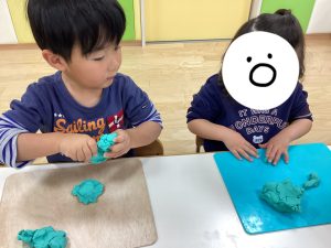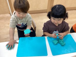 起用に指先を使ってこねたり、伸ばしたり楽しむ様子が見られました♡