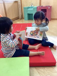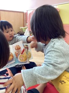 おともだちと1つの絵本を読み合っています❤️