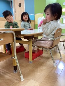 現在、慣れ保育期間中のため午後からは在園児さんのみの保育です😆