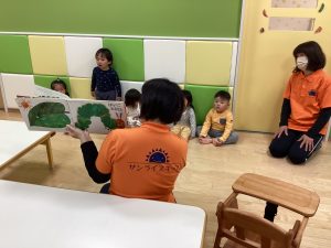 絵本を通して身の回りの物事の名前を習得したり、たくさんの言葉を覚えることができます♡