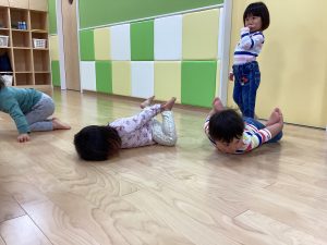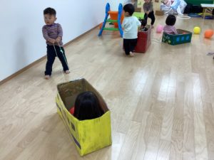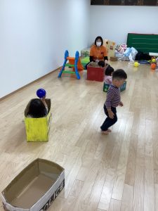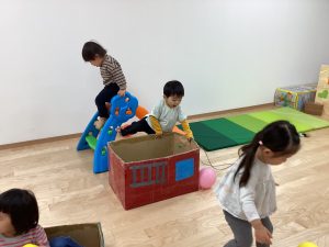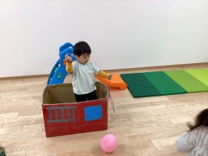 大きいお部屋でのびのび好きな遊びをして身体を動かすよ!