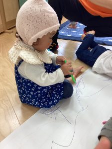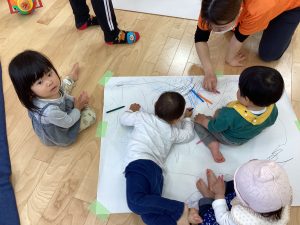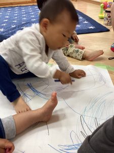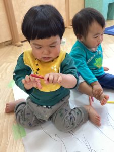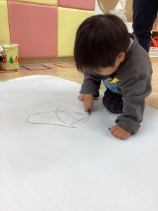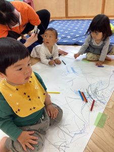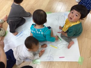 大きな模造紙にたくさんクーピーでお絵描きしたよ😊