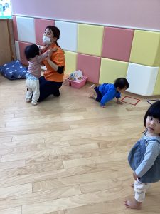 新入園児さんは慣れないことでまだどうするのか戸惑いはありますが、先生と一緒に