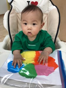 楽しんで絵の具を広げてくれました✨