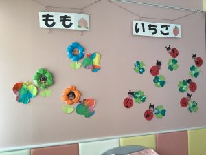 ↑5月製作 壁面 各クラス素敵な作品ができました😊