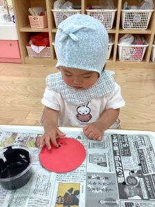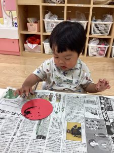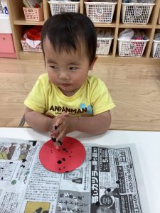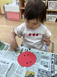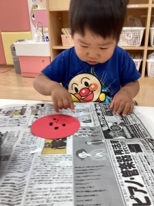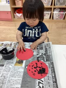 フィンガーペイントでてんとう虫に模様付けしたよ😆