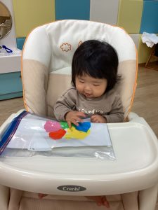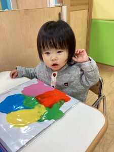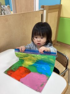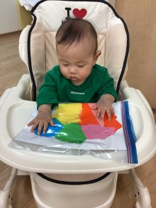 ジップロックに絵の具を入れてグニグニペタペタ感触遊び♪