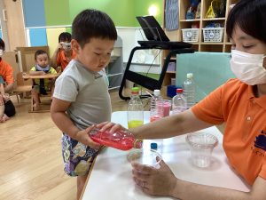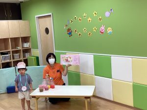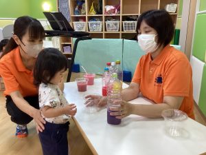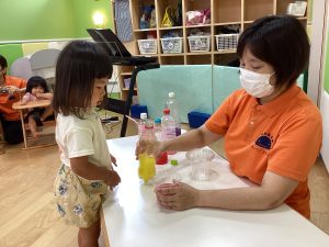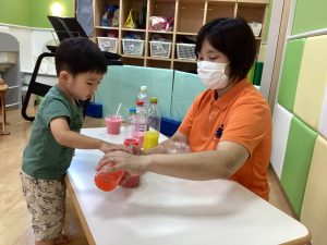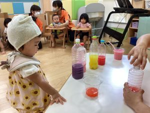 最後は、カップに色んな色の水を混ぜてミックスジュースを作りました🥤