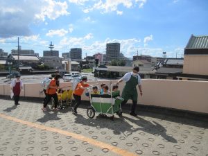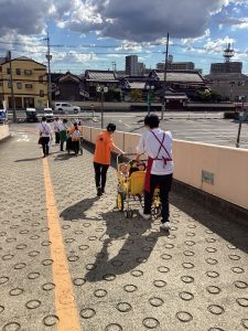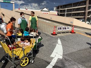 大人が協力し合って坂道を上り、安全な高台まで行きます‼️