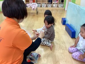 リトミックでは、カスタネットにも挑戦しているよ🎶