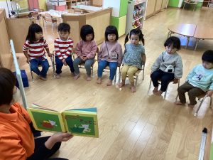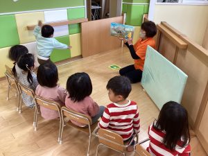 りんご組さんの読み聞かせ時間の様子⭐︎