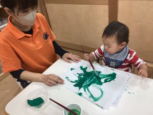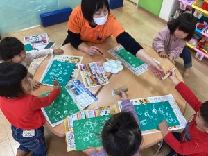 りんご組は獅子舞の壁面製作♪