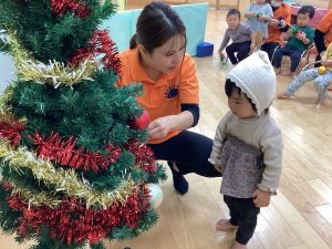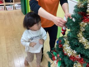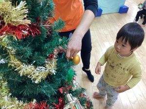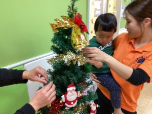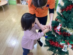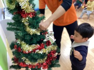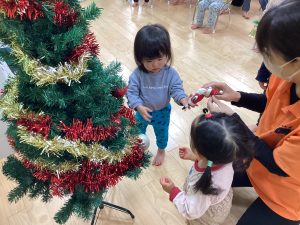 ということでクリスマスツリーにみんなで飾り付けをしました。