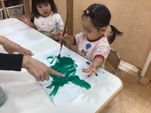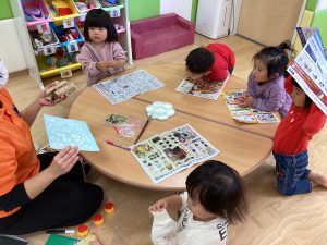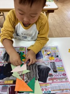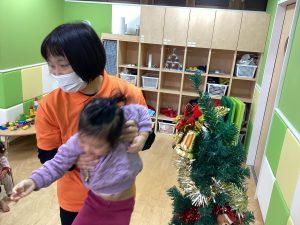 サンタクロース!!と飾りの名前を英語で言いながら楽しく飾り付けしました❤️