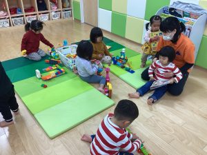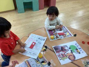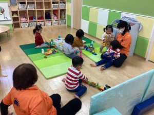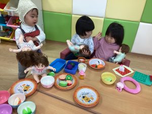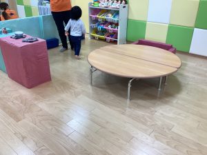 ままごとコーナーでは、机や椅子を出して環境設定をしています😊