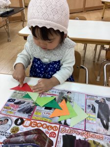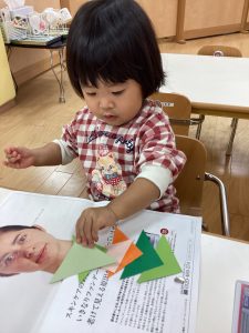 三角折り紙をつなげてペタペタ😊