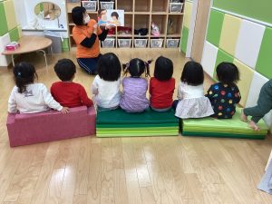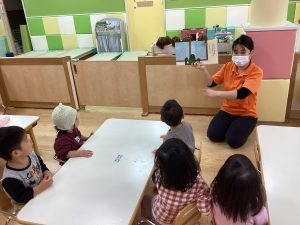 いちご🍓組さんは「わにわにと おおゆき」の絵本を見ました。大好きなわにわにのお話を真剣な表情で見ていました。また違うお話も読みたいと思います。