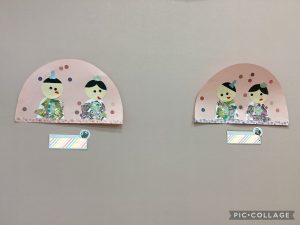 自分で作ったお雛様の製作を持って集合写真を撮りました😆