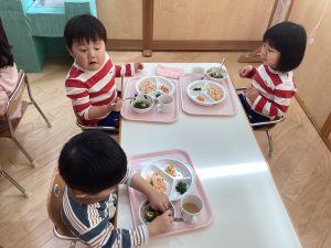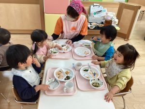 最後は♪うれしいひなまつり♪を歌い、楽しいひな祭り会ができました。今日の給食もひな祭りのメニューでした。みんな喜んで食べていましたよ😊