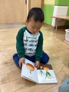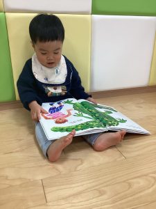 ぼくたちは絵本タイム中〜😊大好きな絵本を楽しんでいます。