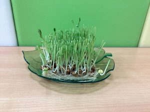 根の部分は水耕栽培にして、今、みんなで成長を見守っています😊7〜10日ほどで収穫できるそうです。