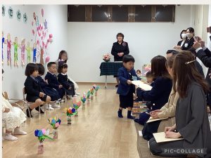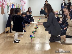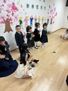 卒園証書を園長先生からもらい、証書をお家の人に渡しました✨お家の人から『おめでとう』と言ってもらい嬉しかったね😊