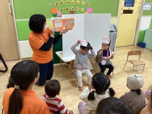 みんなで♪こぶたぬきつねこ♪     ♪アイアイ♪    ♪むすんでひらいて♪の歌も元気いっぱい歌いました。