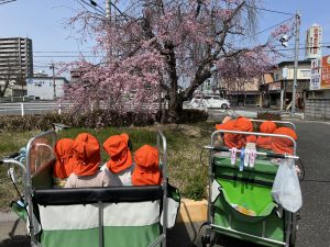 今週は雨の日もありましたが、お散歩に行った日もありました☀️大好きな外に出て、みんなで桜を見に行ってきました。