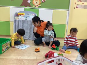 次は室内遊びの様子をちょこっとお伝えします。登園後、午前のおやつの前まで自由遊びをして楽しんでいます😊電車や車のおもちゃ、ままごと遊び、レゴブロック、絵本を見たり好きな遊びを見つけて遊んでいます😊