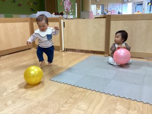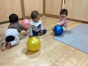 もも🍑組さんはボールで遊びました。大きいボール嬉しいね😊