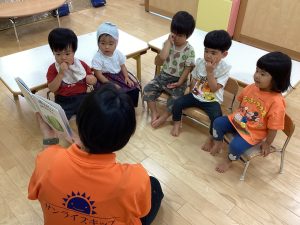 こんにちは😃サンライズキッズ保育園野洲園です。今週も絵本の様子をお伝えします。