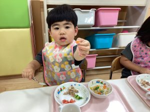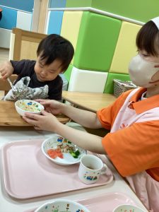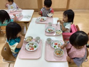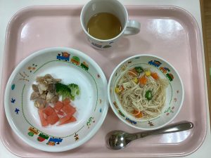 七夕そうめんだったので、喜んで食べていましたよ。星型の人参やオクラが入っていたので、人参だけを見つけて先に食べるお友だちもいました。