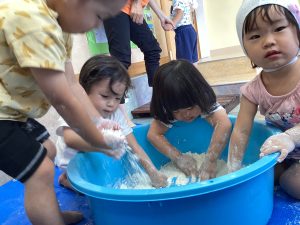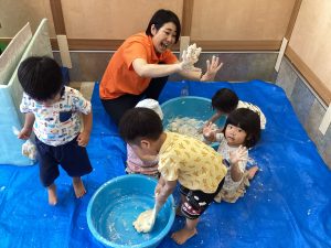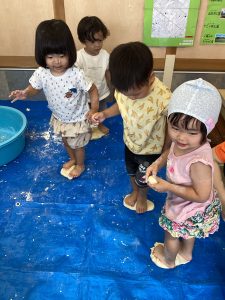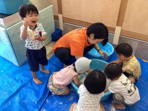 こんにちは😃サンライズキッズ保育園野洲園です。7月に入りましたね。みんなが楽しみにしている水遊びが始まりました。今週は感触遊びや七夕会🎋など色々楽しみました。