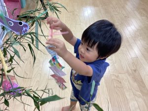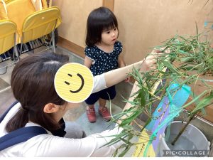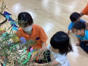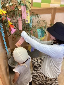 お家の方と一緒に短冊を飾ってる様子も少し紹介します。