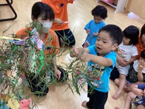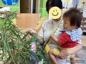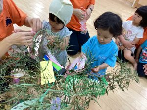 りんご🍎組さんは自分で製作で作ったものを笹に飾りました!