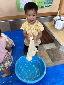 みんなで混ぜ混ぜしたよ!サラサラだね