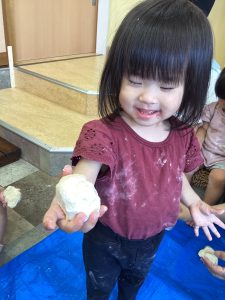 「おっ、これが小麦粉粘土?ちょっとさわってみようかな(笑)😆」