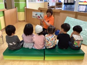 こんにちは、サンライズキッズ保育園野洲園です。今週の絵本ブログはりんご組さんの絵本の様子をお伝えします。