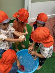 りんご🍎組さんもハンカチタオルを洗濯したよ。