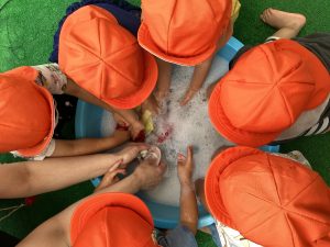 『お友だちに泡がかからないように混ぜ混ぜできるかな?』と伝えると、みんなが優しくかき混ぜていました😃