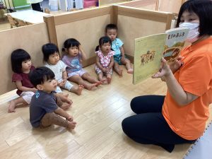 こんにちは、サンライズキッズ保育園野洲園です。今週の絵本の様子をお伝えします。