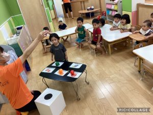 この他にも、四角🟧やハート♥️、星⭐️をみんなで発音し、形を探して楽しみました😊
