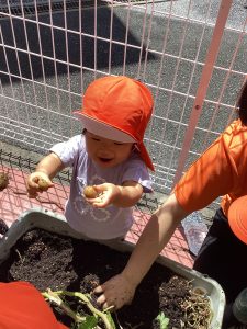 「あっ、あったよ」小さいじゃがいも発見😆