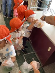 もちろん給食の先生にもお買い物の報告をしに行きました!りんご組さんお買い物ありがとう😊